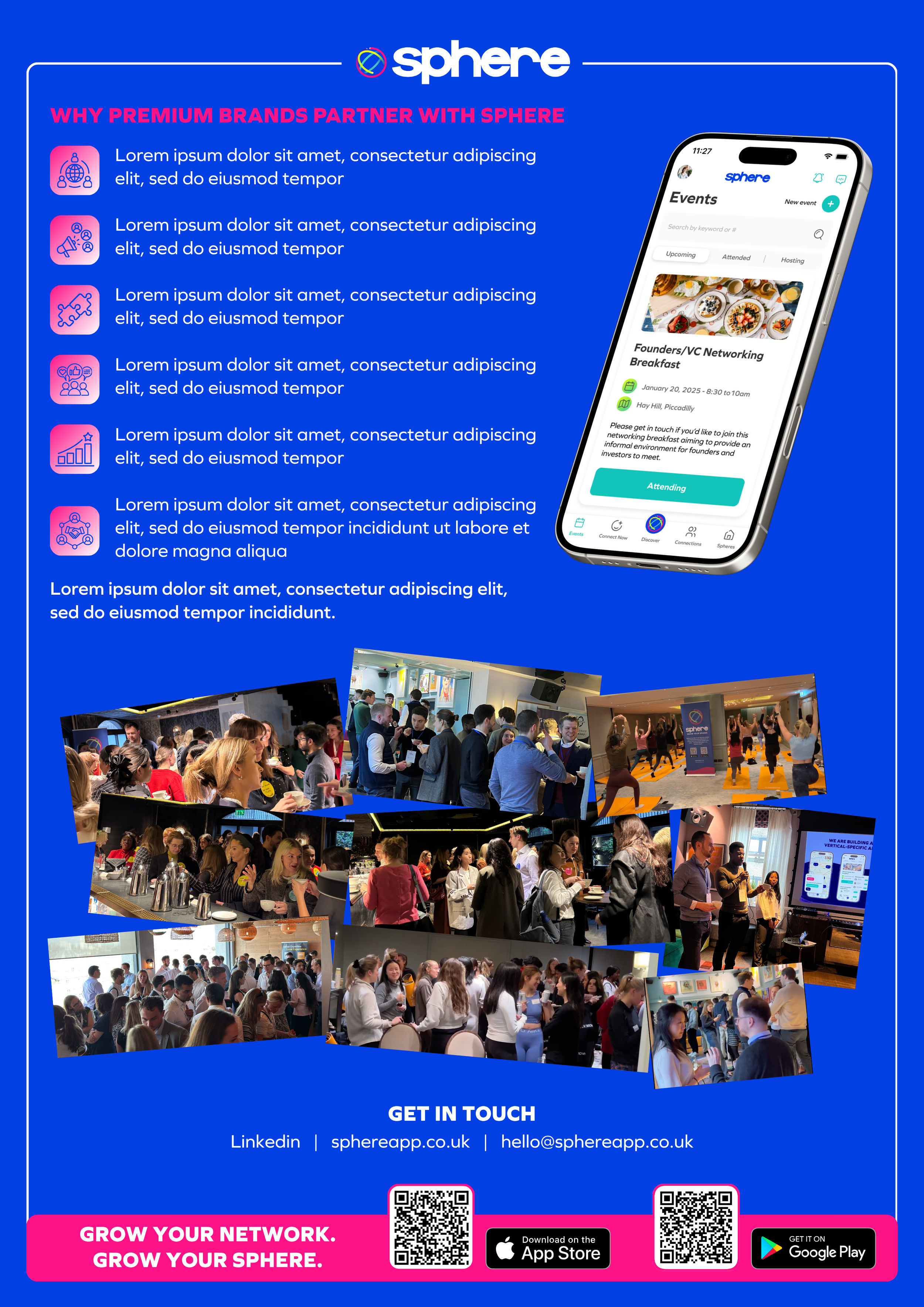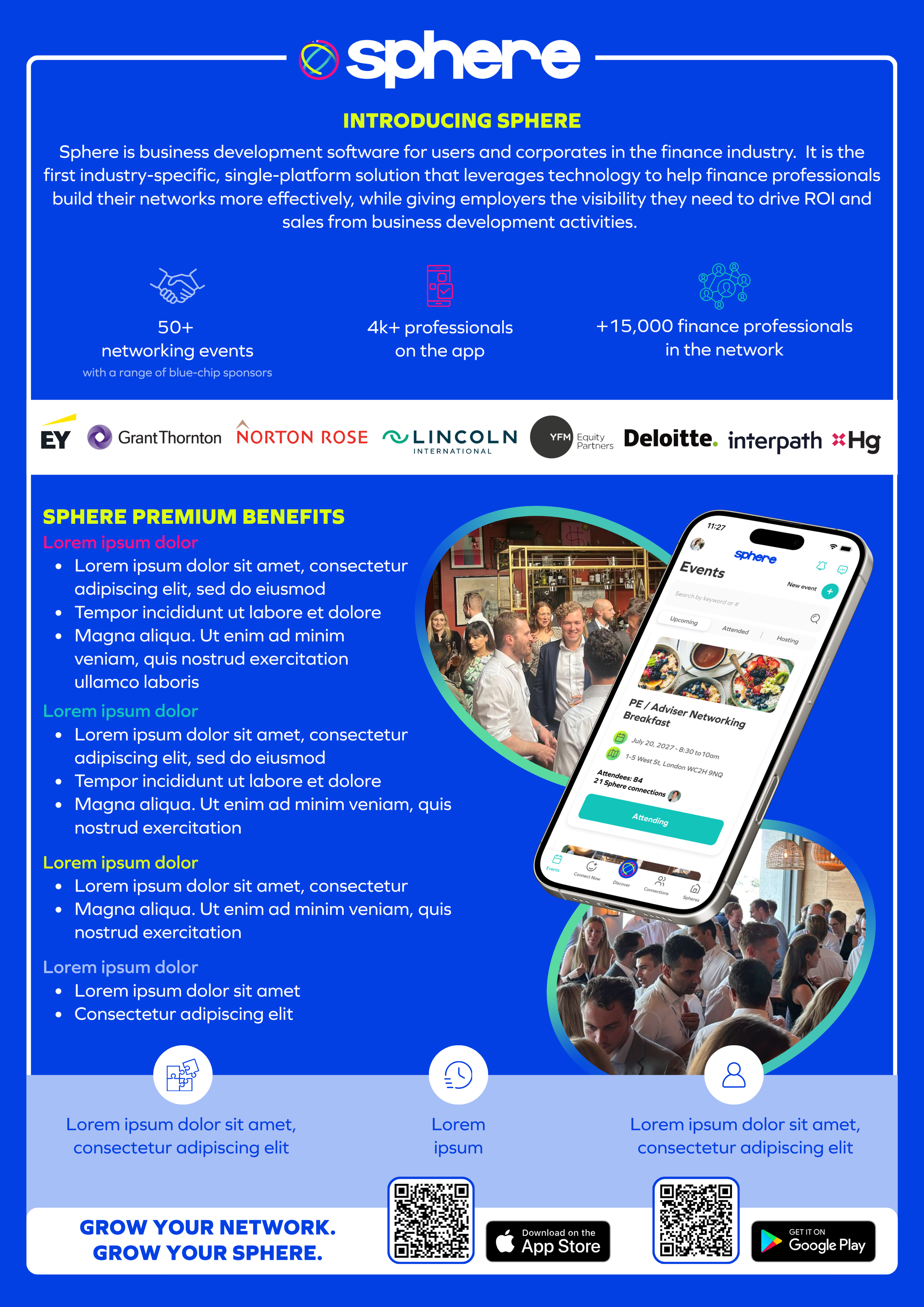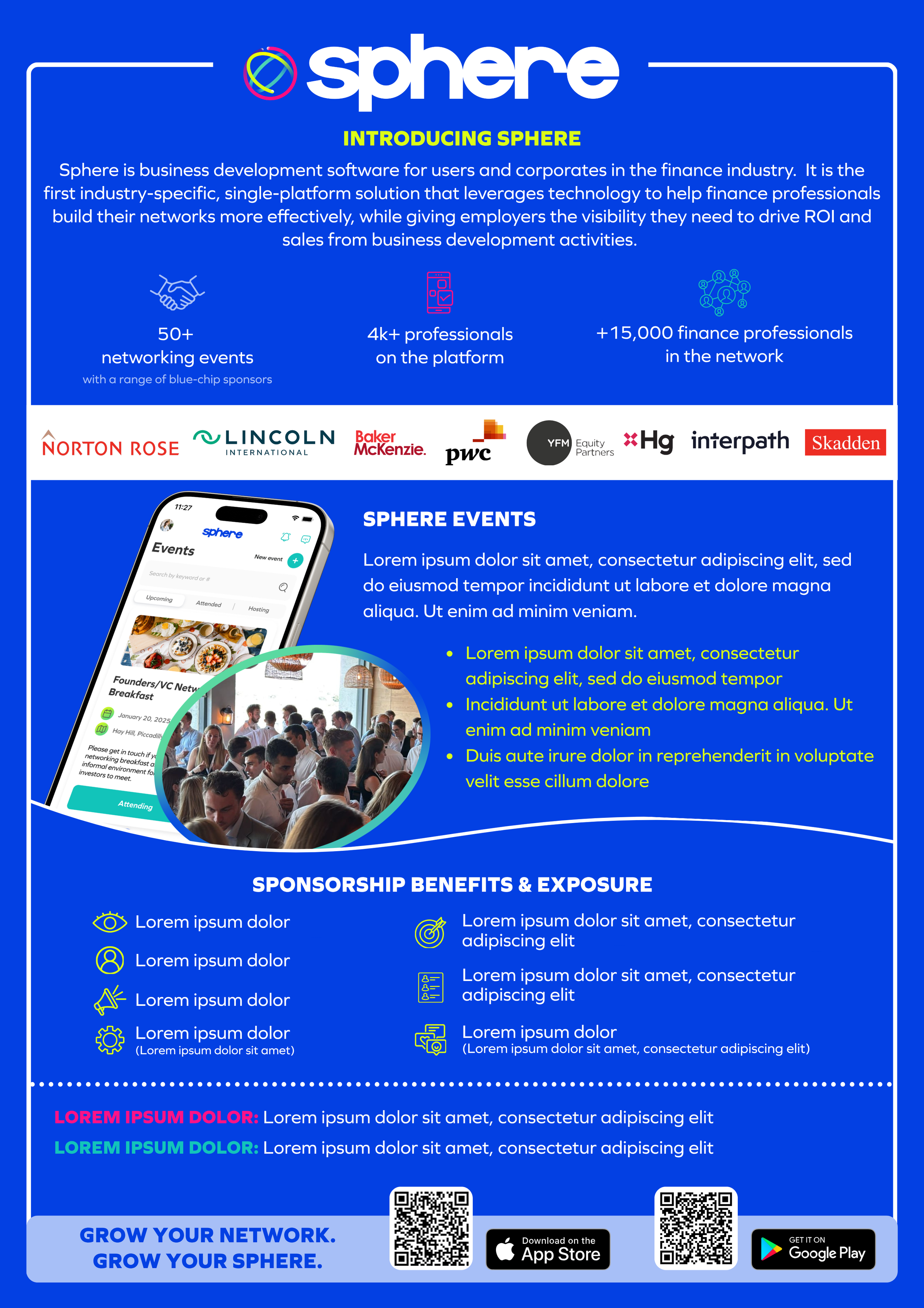 Design support extended to materials used for Sphere’s networking events and industry presentations.